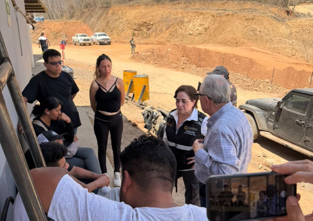 Culiacán, Sin.- Este martes el gobernador Rubén Rocha Moya realizó una nueva visita a la mina Santa Fe en Rosario, donde junto con Laura Velázquez, Coordinadora Nacional de Protección Civil, sostuvieron una charla con familiares de los trabajadores que aún siguen atrapados al interior de la mina.